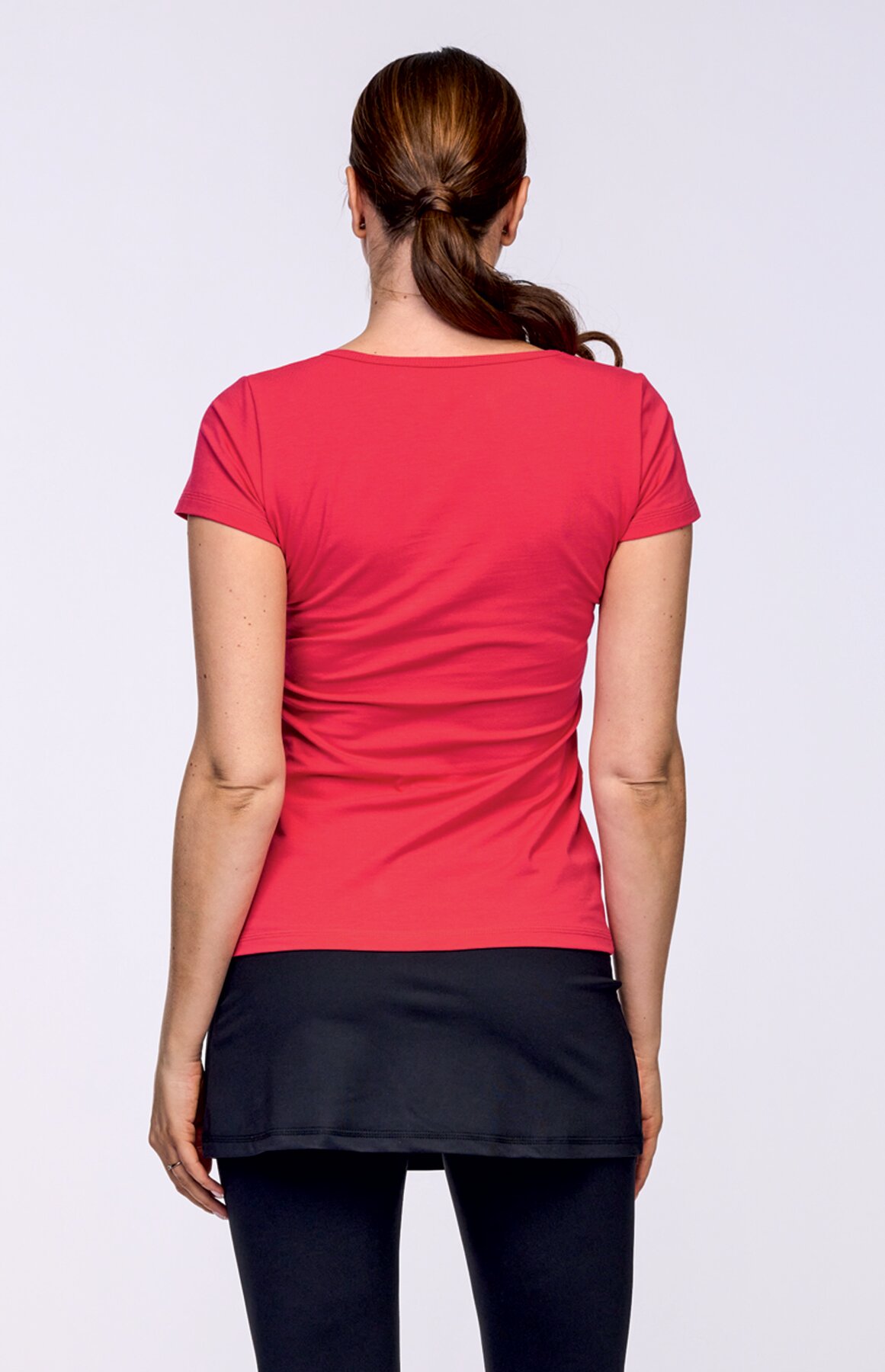 Bavlněné dámské tričko s krátkými rukávy, kulatým výstřihem a kontrastním postiskem.