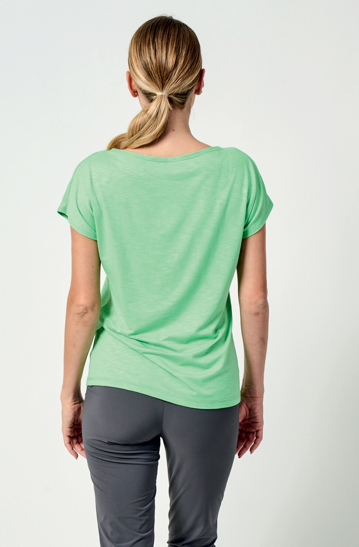 Volnější dámské tričko kimonového střihu. Lesklý potisk vytváří zajímavý kontrast. Je skvělou volbou pro volný čas. Je vyrobené z čárkovaného viskózového materiálu, který je prodyšný, měkký , nemačká se a dobře drží tvar.