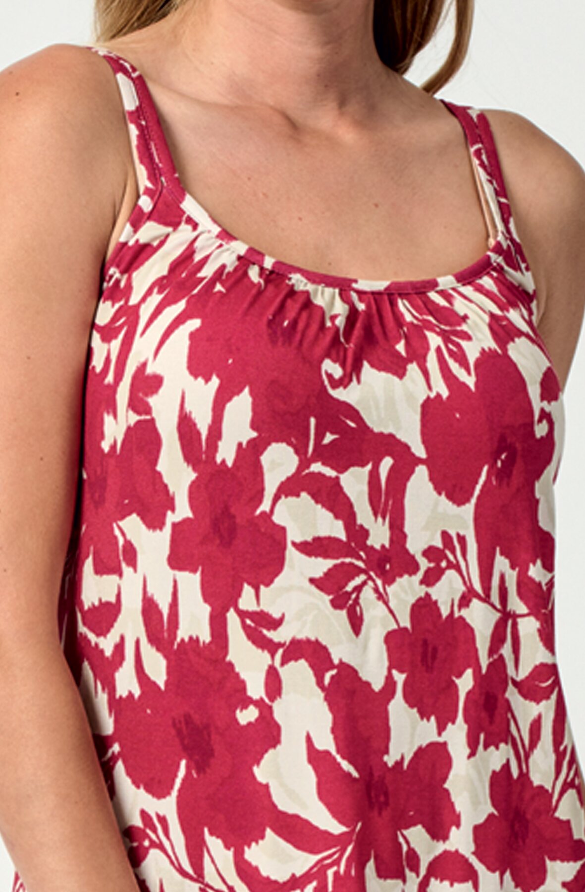 Dámské mírně rozšířené šaty s délkou po kolena jsou ideální volbou pro letní dovolenou nebo město. Dvojitá ramínka a řasení ve výstřihu zajistí pohodlné nošení po celý den. V těchto šatech se budete cítit příjemně a volně díky materiálu z viskózy, který je prodyšný, pružný a perfektně drží tvar.