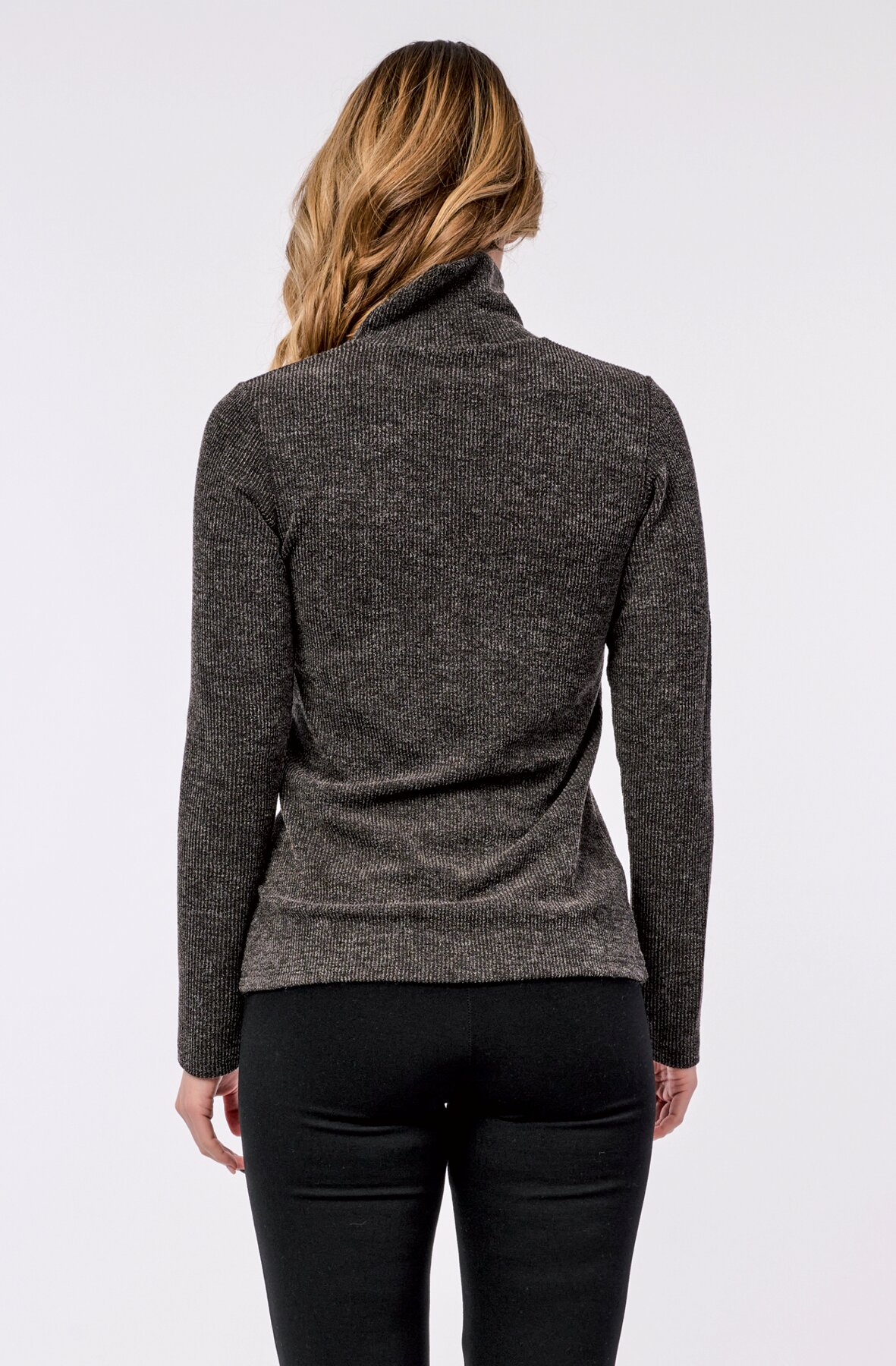 Přiléhavá dámská halenka s rolákem. Je vyrobená z teplejšího žebrovaného materiálu.